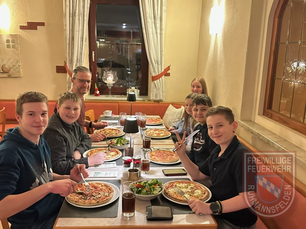 Mimmo, der Chef der Bellini hat die Jugendfeuerwehr zum Pizzaessen eingeladen.