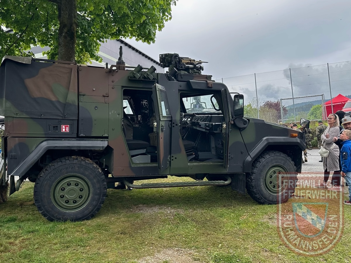 Beeindruckend präsentierte sich auch die Bundeswehr vor der Mittelschule mit Panzern, Ausrüstung und vielen Informationen. Im Hof der Grundschule präsentierte die Polizei in vielen Facetten ihre Aufgaben. Das Wrack des Unfallautos vom Raserunfall in Kalteck erinnerte daran, wie beim Rasen Menschenleben in Sekunden ausgelöscht werden können und bleibende Schäden verursachen. Die Kinderpolizei und der Simulations-Hubschrauber fanden genauso viel Aufmerksamkeit wie die Polizeihunde und das Lasergewehrschießen mit Knall und Gehörschutz in den Räumen der Grundschule.