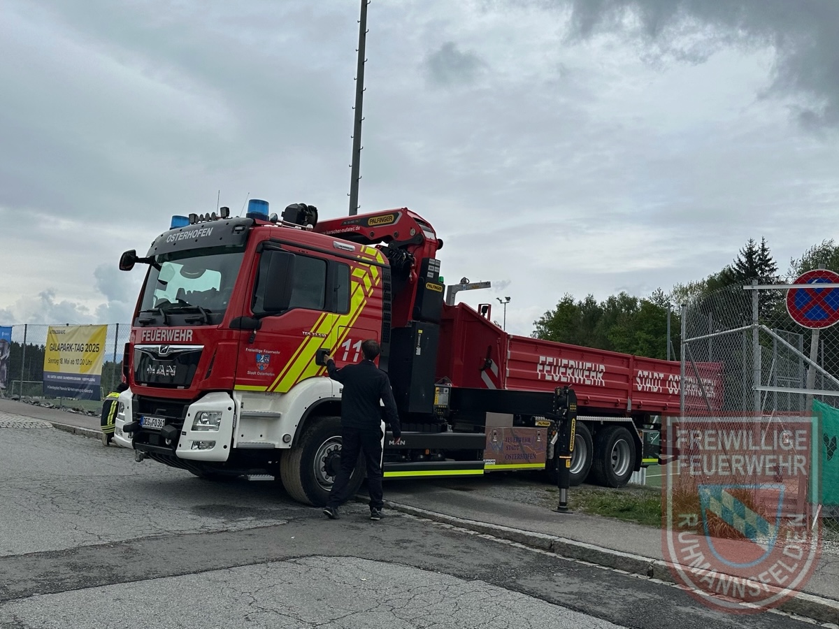 Als stellvertretender Leiter des KFW und als Ehrenkommandant der Ruhmannsfeldener Feuerwehr holte Rudi Edenhofer zum Schluss der Veranstaltung die Vertreter der verschiedenen Feuerwehren zu sich um ihnen für die Teilnahme zu danken sowie allen, die zum Gelingen des Rettungstages beitrugen – ganz besonders den Familien Michael Marchl und Rudi Kauschinger für die Parkplätze auf den Wiesen und der Spvgg, die nicht nur das Gelände zur Verfügung stellte, sondern sogar ein Spiel verlegte.