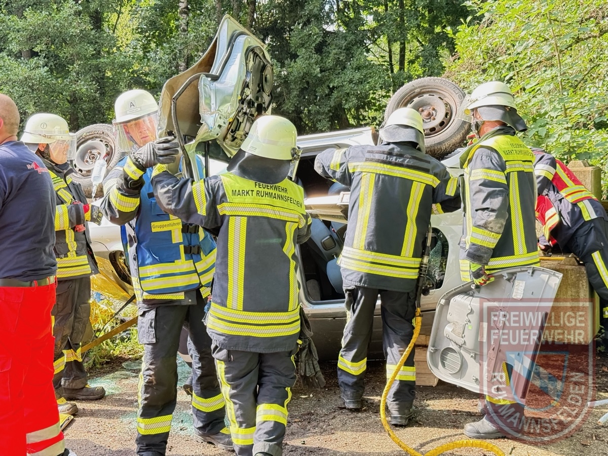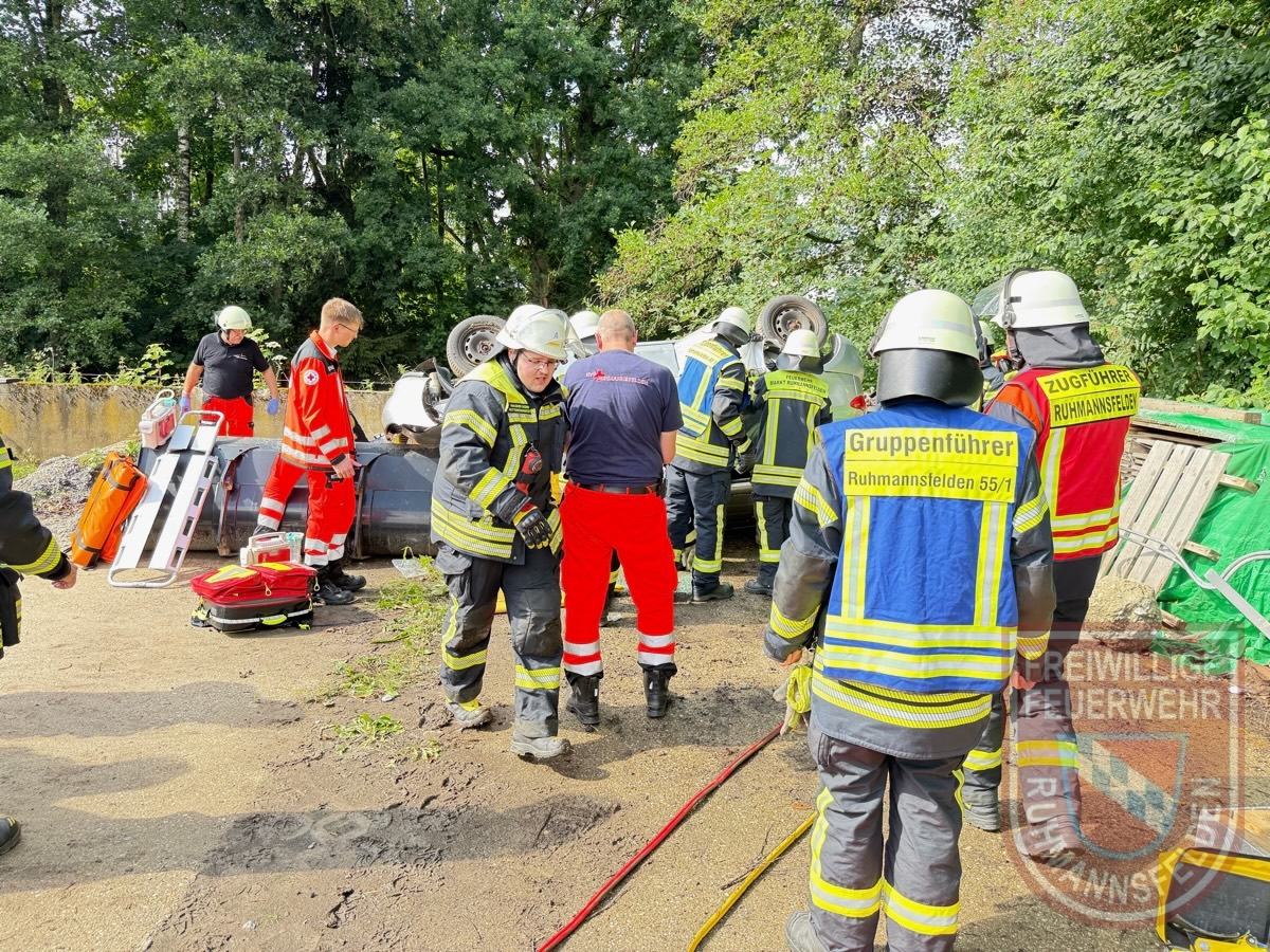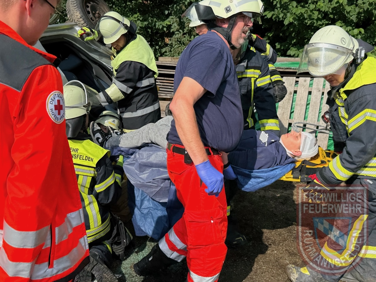 Zur sicheren Rettung der Insassen wurde das Unfallfahrzeug zunächst unterbaut und gegen weiteres Verrutschen gesichert. Anschließend kamen Spreizer und Rettungsschere zum Einsatz, um die eingeklemmten Personen zu befreien. Parallel dazu erfolgte die medizinische Erstversorgung durch den HVO Ruhmannsfelden, unterstützt vom Notarzt Dr. Michael Stern und dem RTW der BRK Bereitschaft Zwiesel.