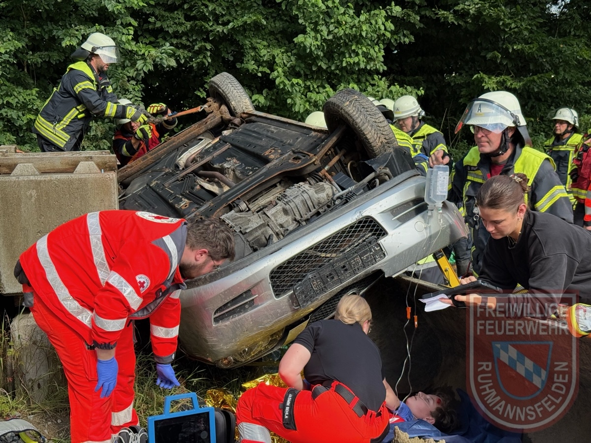 Ein PKW mit insgesamt drei Insassen überschlägt sich, liegt auf dem Dach – es entsteht ein kleiner Brand!
