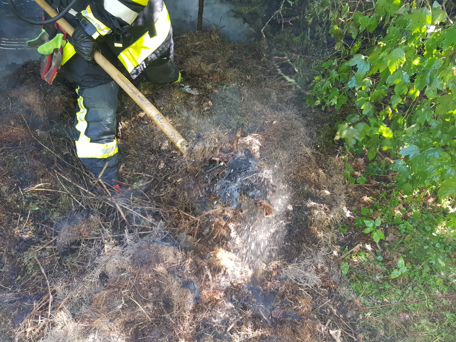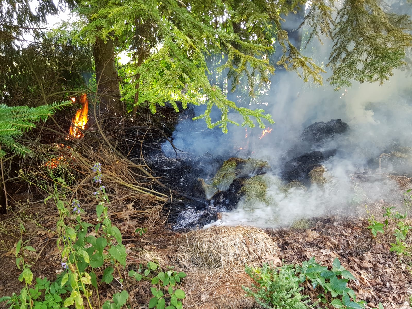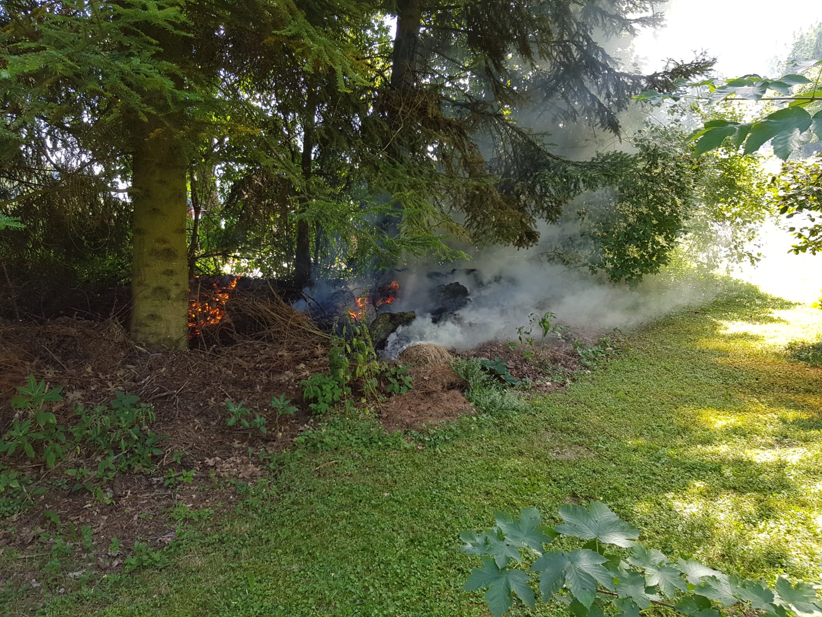 Größere Mengen von Rasenschnitt können sich bei solchen Temperaturen sogar selbst entzünden. Zum Glück entdeckte die Gartenbesitzerin den Brand schnell und alarmierte die Feuerwehr. Den Schaden schätzt die Polizei auf höchstens 100 Euro, sollte einer der Bäume absterben.