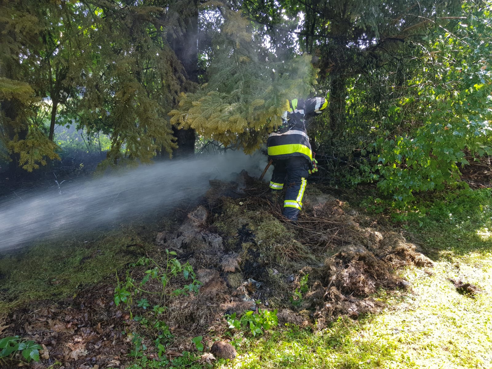 "Brandstiftung kann man auf alle Fälle ausschließen." Der Brand ist der anhaltenden Hitze geschuldet, unter der der Landkreis wohl noch eine Weile zu leiden haben wird. Durch das Feuer entzündete sich auch eine der Fichten.