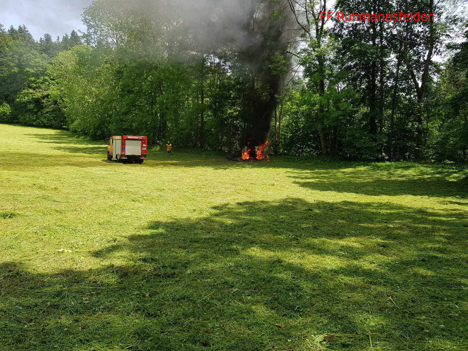 Der Landwirt versuchte anfangs das Feuer noch selber zu löschen und hängte den Schwader in aller Eile ab, doch nach kurzer Zeit breitete sich der Brand aus und die gesamte Maschine wurde zerstört. Der Totalschaden dürfte sich auf 20.000 Euro belaufen.