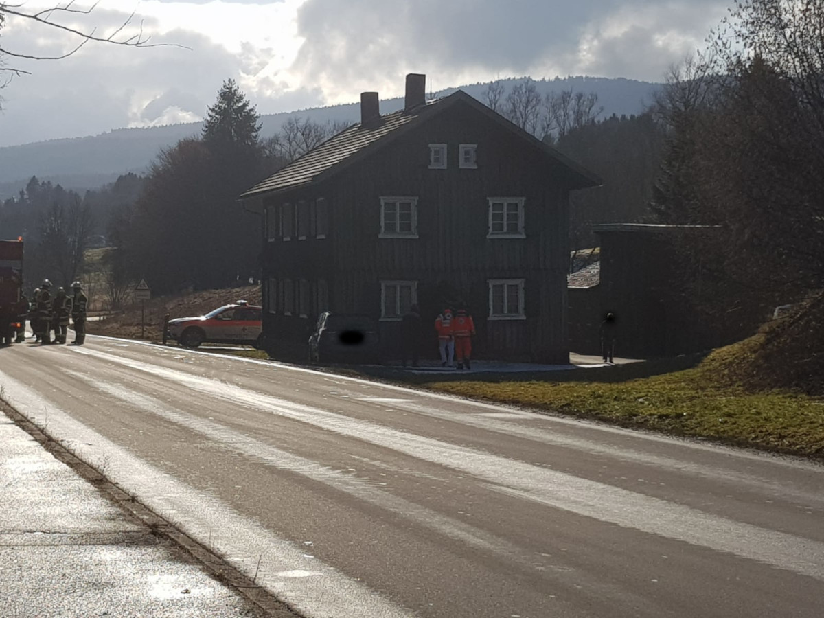 Dieser touchierte den Hyundai auf der Fahrerseite und kam dann auf der Wiese am Straßenrand zum Stehen kam, nachdem er einen Begrenzungspfosten umgefahren hatte. Der Hyundai-Fahrer lenkte seinen Wagen nach rechts in den Straßengraben, fuhr auf der Wiese weiter und stieß schließlich gegen das am rechten Straßenrand stehende so genannte "schwarze Haus".