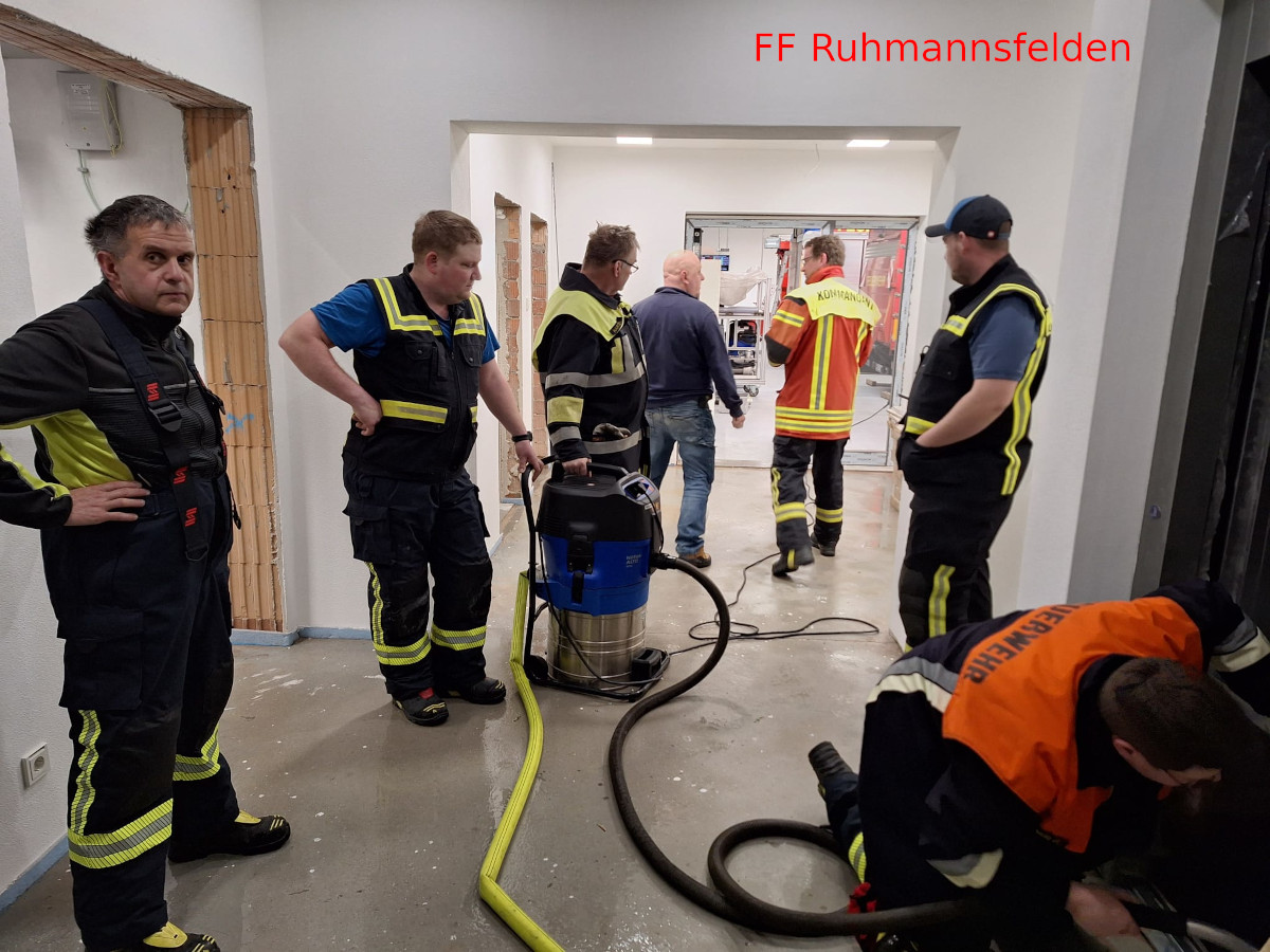 Am Montag wurden wir frühmorgens zu einem erneuten Einsatz in unserem eigenen Gerätehaus gerufen, da das Erdgeschoss, das sich noch im Umbau befindet, überschwemmt war. Nach einer ersten Untersuchung stellten wir fest, dass das Wasser aus einer undichten Stelle unter einem Waschbecken an der Wand kam. Wir haben das Wasser mit Nasssaugern entfernt und mit einer Tauchpumpe aus dem Aufzugsschacht gepumpt. Leider bedeutet dieser Vorfall, dass die Fertigstellung unseres Gebäudes sich erneut um einige Zeit verzögern wird.